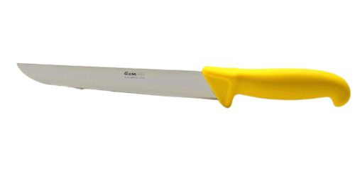 Húsvágó - szeleteló kés, Professional X50CrMoV15 A Dixon húsvágó és szeletelő a tökéletes eszköz mind az ipari, mind a konyhai felhasználásra. Az X50CrMoV15 acél alapanyagból készült penge kiváló minőségű és tartós, hogy precíz és hatékony vágást biztosítson. A 3 mm vastagságú, merev penge lehetővé teszi, hogy könnyedén vágja fel a húst és a szárazárukat, így a legjobb eredményeket érheti el.Az ütésálló polipropilén markolat kényelmes és biztonságos fogást biztosít, így a felhasználó kényelmesen és hatékonyan dolgozhat vele. Ez az eszköz a professzionális konyhákban és az ipari környezetben is használható, ahol a megbízható és tartós szerszámokra van szükség.A Dixon húsvágó és szeletelő tökéletesen alkalmas mindenféle hús és szárazáru vágásához, mivel a merev penge lehetővé teszi a precíz és hatékony vágást. Az eszköz kiváló minőségű és tartós, így hosszú ideig kitűnő teljesítményt nyújt.Ha olyan eszközt keres, amely megfelel mind az ipari, mind a konyhai környezetnek, a Dixon húsvágó és szeletelő tökéletes választás lehet. Ez a szerszám garantáltan javítja a vágási eredményeket, és nélkülözhetetlen segítséget nyújt a legnehezebb feladatokhoz is. Legyen szó akár hentesről, szakácsról vagy otthoni konyháról, a Dixon húsvágó és szeletelő minden felhasználó igényeit kielégíti.