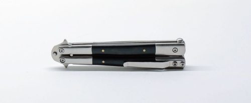 Klasszikus pillangókés, drop point penge formával.