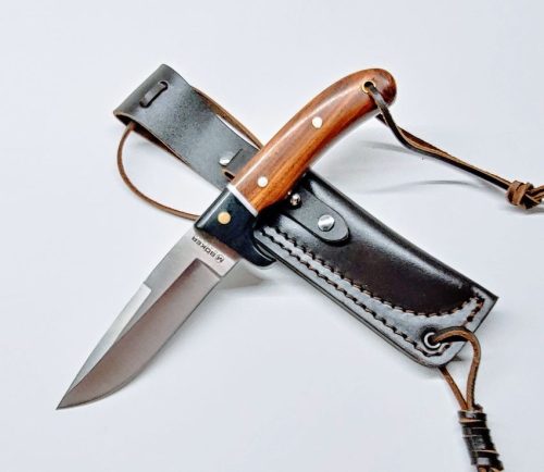 Gyönyörű túra, vadéászkés, mely magán hordozza a stílus összes fő ismertető jelét. Mondhatjuk rá, hogy halhatatlan klasszikus. A kellően hasas, rozsdamentes 440A acél penge, a gyönyörű mintázatú rózsafa és paliszander markolat, a tekintélyes ujjvédő mind-mind a stílus alap ismertetőjele. A kés full tang kivitel, tehát bármennyire szép is, nem kell félteni a keményebb használattól. Ízléses bőrtok ját hozzá.