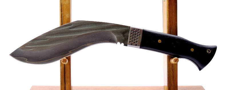 A 5 mm vastag penge kellő tartalékot ad nehezebb munkákhoz is, miközben a kukrikra jellemző ív hatékony vágást biztosít. A penge hossza és formája kiegyensúlyozott, jól irányítható, nem válik ormótlanná. A full tang kialakítás stabil, megbízható szerkezetet eredményez, amit tovább erősít a rozsdamentes acél bakni a penge és a markolat találkozásánál.