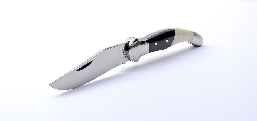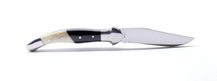 A markolat igazán különlegessé teszi ezt a modellt. Az első rész bivaly szaruból készült, amely elegáns, sötét tónusával komoly megjelenést ad, míg a hátsó rész agancs vagy szürke marha csont, ami természetes mintázatával minden darabot egyedivé tesz. Nincs két teljesen egyforma példány – minden bicska saját karakterrel rendelkezik.