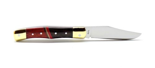 A zsebkés különlegessége a markolat kétféle fa kombinációjában rejlik. A wenge és paduk fa markolat elegáns és természetes megjelenést kölcsönöz a késnek, amelyet egy fiber betét választ el, még inkább kiemelve a faanyagok szépségét és egyediségét. A markolati alaplapok és betétek rozsdamentes acélból készültek, biztosítva a hosszú élettartamot és a stabilitást. A markolat végeit tömör réz végek díszítik, amelyek nemcsak esztétikusak, de növelik a kés egyensúlyát is.