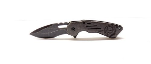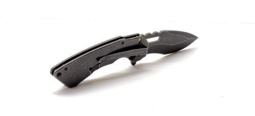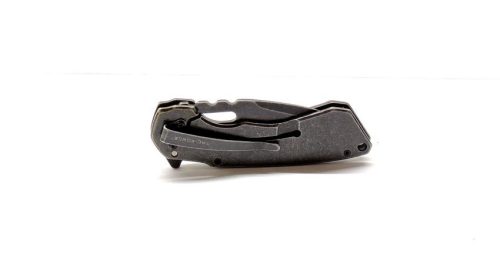 Taktikai egykezes, gyorsnyitású zsebkés. Különleges pengeforma, rusztikus kőmosott penge és markolat.