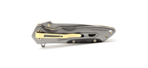 Agresszív vonalvezetésű EDC zsebkés! Igazi mindenes. Remekül helyt áll a mindennapok kalandjaiban és jól teljesít outdoor környezetben is. A drop point penge markáns hamiséllel van ellátva és titán bevonatot is kapott. Az egykezes nyitást szemölcs és flipper segíti.