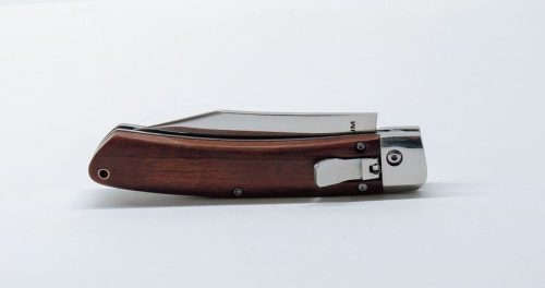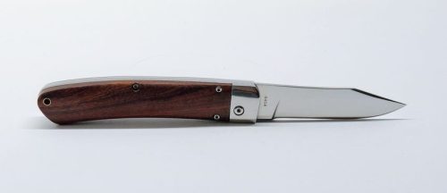 Rugóskés, elegáns és klasszikus forma. Idézi a múltat, miközben előre mutat. A rozsdamentes 440A acél penge rugó segítségével nyitható. A stílusos nyomógomb kontrasztosan elkülönül a szép mintázatú rózsafa markolattól, melyet a pengével egy rozsdamentes acél bakni kapcsol össze.