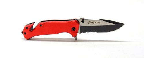 Vérbeli taktikai kés a stílus szerelmeseinek. Agresszív drop point pengéje félszerát éllel és markáns hamiséllel van ellátva a legjobb teljesítmény érdekében. Az egykezes nyitást flipper és nyitószemölcs segíti.A markolat alumíniumból készült és tartalmaz egy biztonsági hevedervágót, valamint egy üvegtörőt is.A zsebkéshez praktikus nylon tok tartozik.