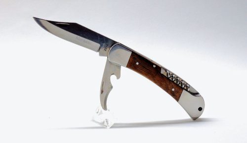 Klasszikus amerikai vonalvezetésű outdoor EDC zsebkés. Mivel süllyesztett hátsózárral készült, így a keményebb igénybevétel alkalmával is megbízhatóan működik. Acél markolat panelek, fa borítás jellemzi etz a masszív munkakést. Sörbontó , dugóhúzó teszi sokoldalúvá ezt az egyszerű kidolgozású munka- zsebkést.