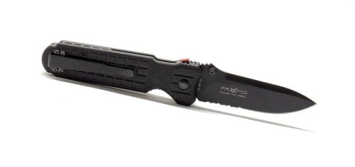 Ez a kés egy vérbeli taktikai kés az olasz gyártó kínálatából. A jól bevált recept alapján végy egy kiváló rozsdamentes Böhler acélt, egy praktikus félfogazott penge kialakítást, egy acél erősítéses robosztus FRN markolatot és egy dupla biztonsági zárat... A drop point penge a durván texturált markolat minden körülmények között jó felhasználhatóságot és biztos fogást biztosít. Ideális választás outdoor tevékenységekhez.