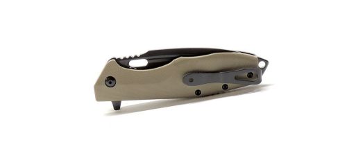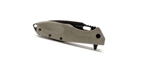 A Caracal Folder zsebkés a gyártó egyik legvagányabb sorozata. A terveket Borisz Manaszerov készítette, akinek stílusa és maximalista hozzáállása világhírű. Nos, ennél a modellnél ez tökéletesen tetten érhető. Egyszerre modern és kifinomult, erős taktikai elemekkel fűszerezve. A drop point penge DLC fekete bevonatos D2 szerszámacélból készült. A markáns ujjtámasz kellő masszivitást ad előfogáskor. Az egykezes használatot nyitóvájat és flipper segíti. Stílusos és ötletes megoldás. A markolat coyote G10 anyagból készült fejlett ergonómiai kialakítással. A biztonságról liner lock (keresztzár) gondoskodik. A deep carry zsebklipsz diszkréten rejti a zsebkést a ruházatunkban.