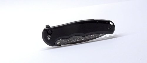 A zsebkés markolata fekete alumíniumból készült, amely nem csak stílusos megjelenést kölcsönöz a késnek, de biztosítja a kényelmes és biztos fogást is. A 123,7 mm hosszú markolat tökéletesen illeszkedik a kézbe, lehetővé téve a hosszú távú, fáradtságmentes használatot.