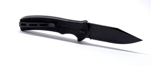 Markolat és zármechanizmusA markolat anyaga G10, amely tartós, könnyű és csúszásmentes fogást biztosít. A zármechanizmus egy gombzár, amely gyors és biztonságos egykezes használatot tesz lehetővé. A kerámia golyóscsapágyak sima nyitást garantálnak, míg a flipper segítségével gyorsan aktiválható a penge.