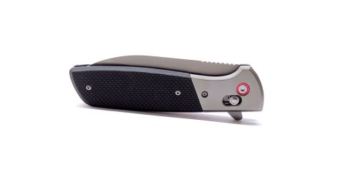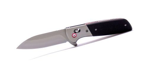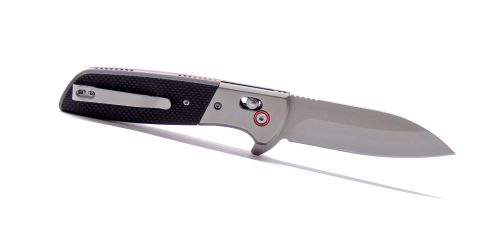 A flipperes nyitás csapágyazott rendszerrel párosul, ami gyors, egyenletes mozgást ad a pengének. A golyós zár stabilan tartja nyitott állapotban, miközben záráskor finoman, kontrolláltan old. A markolat acél alaplapokra épül, G10 és acél elemek kombinációjával – masszív, határozott fogást ad, túlzások nélkül.