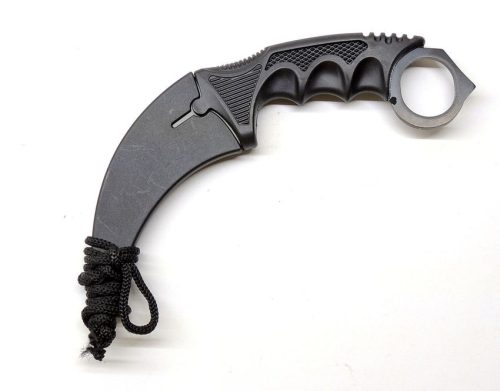 Egy nagy méretű 3 mm vastag és 10,2 cm hosszú fekete korróziógátló felületű pengével szerelt küzdő kés. FRN markolat és tok, lapos kivitel a mellékelt zsinór segítségével nyakban is könnyen viselhető.