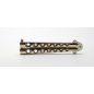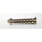 Exkluzív megjelenésű pillangókés a stílus szerelmeseinek. Impozáns mérete erőt és tekintélyt sugároz. A markolat rovátkolásának köszönhetően a súlypont végig jól kontrollálható és stabil a ráfogás. A kéz pengére csúszását dupla flipper gátolja.