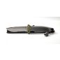 Klasszikus túlélőkés és outdoor kés praktikus félfogazott pengével. A markolat, minden körülmények, kényelmes és csúszásmentes fogást bíztosít. Anyaga texturált Kraton-G . A kés könnyen hordható ill. viselhető a jó kialakítású kydex toknak köszönhetően, amelyben megtalálható egy integrált szikravető és egy élező betét is. A markoat vége az erős fém betétnek köszönhetően kalapácsként is használható amelyen egy jelző sípot is találhatunk.