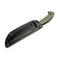 A kés markolata texturált, zöld színű G10 anyagból készül, ami kiváló fogást biztosít még nedves környezetben is. A markolat kialakítása ergonomikus, ami lehetővé teszi a kényelmes és biztonságos fogást.