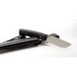 Robosztus 5 mm vastag , a markolat teljes szélességében végigfutó penge.