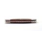 Grószi Maskara Extra zsebkés, bicska, wenge fa markolattal, amely mindkét oldalán napkorong díszítés található. A baknik és az alaplapok tömör rozsdametes acélból készültek.