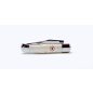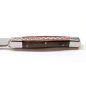 Grószi Maskara Extra zsebkés, bicska, wenge fa markolattal, trikolor díszítéssel. A baknik és az alaplapok tömör rozsdametes acélból készültek.